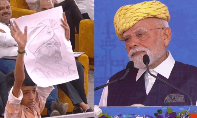 ભાવનગરમાં વડાપ્રધાન મોદીની સભામાં ધોરણ 8માં અભ્યાસ કરતો બાળક PM મોદી માટે પોસ્ટર તૈયાર કરીને લાવ્યો હતો. તેણે PM મોદી માટે ચિત્ર બનાવ્યું હતું. ત્યારે તેમના સંબોધન દરમિયાન વડાપ્રધાન મોદીએ આ બાળકને જોતો અને કહ્યું કે એક નાનો બાળક ચિત્ર બનાવીને લાવ્યો છે, કયારનો ઉભો છે, એના હાથ દુઃખતા હશે. કોઈ જરા આને કલેક્ટ કરે. શાબાશ બેટા.”