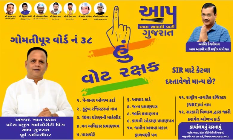 ગુજરાતમાં SIR ફોર્મ ભરવાની પ્રક્રિયામાં સામાન્ય નાગરિકોને થતી અગવડતા દૂર કરવા માટે અમજદ ખાન – આમ આદમી પાર્ટી માઈનોરિટી પ્રમુખ – ગુજરાત દ્વારા મહત્વપૂર્ણ પહેલ કરવામાં આવી