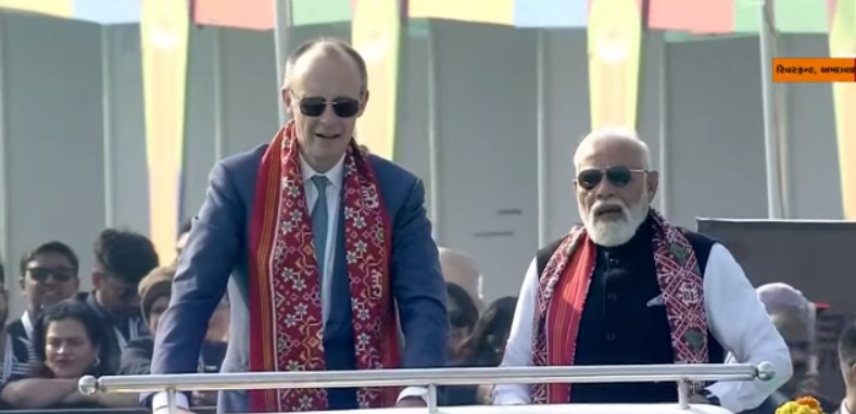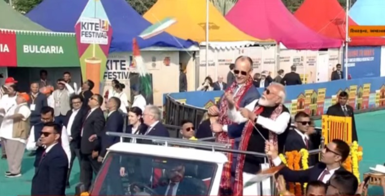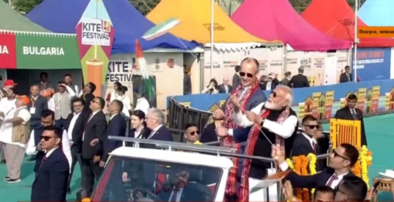 મોદી-ફ્રેડરિક મર્ઝે ભારત-જર્મનીની ફ્રેન્ડશીપનો પતંગ ચગાવ્યો:ખુલ્લી જીપમાં આંતરરાષ્ટ્રીય પતંગ મહોત્સવ નિહાળ્યો