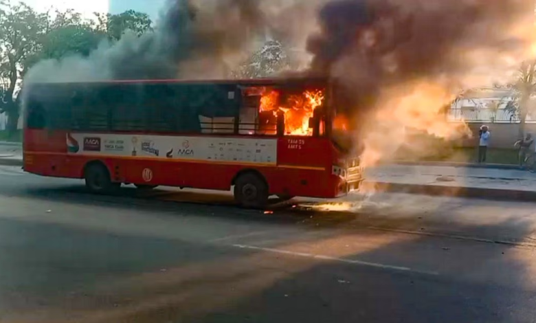 AMTSની લાલદરવાજા થી બાવળા રૂટની બસમાં આગ, સદનસીબે જાનહાની ટળી