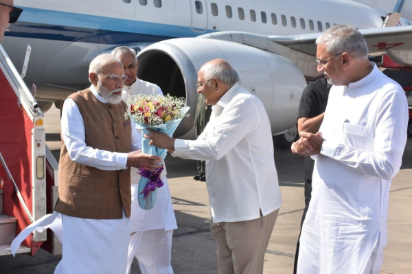 વડાપ્રધાન નરેન્દ્ર મોદી અમદાવાદ એરપોર્ટ પર પહોંચ્યા છે. જ્યાં મુખ્યમંત્રી અને રાજ્યપાલે તેમનું સ્વાગત કર્યું હતું. હવે કોબા જવા રવાના થયા છે.